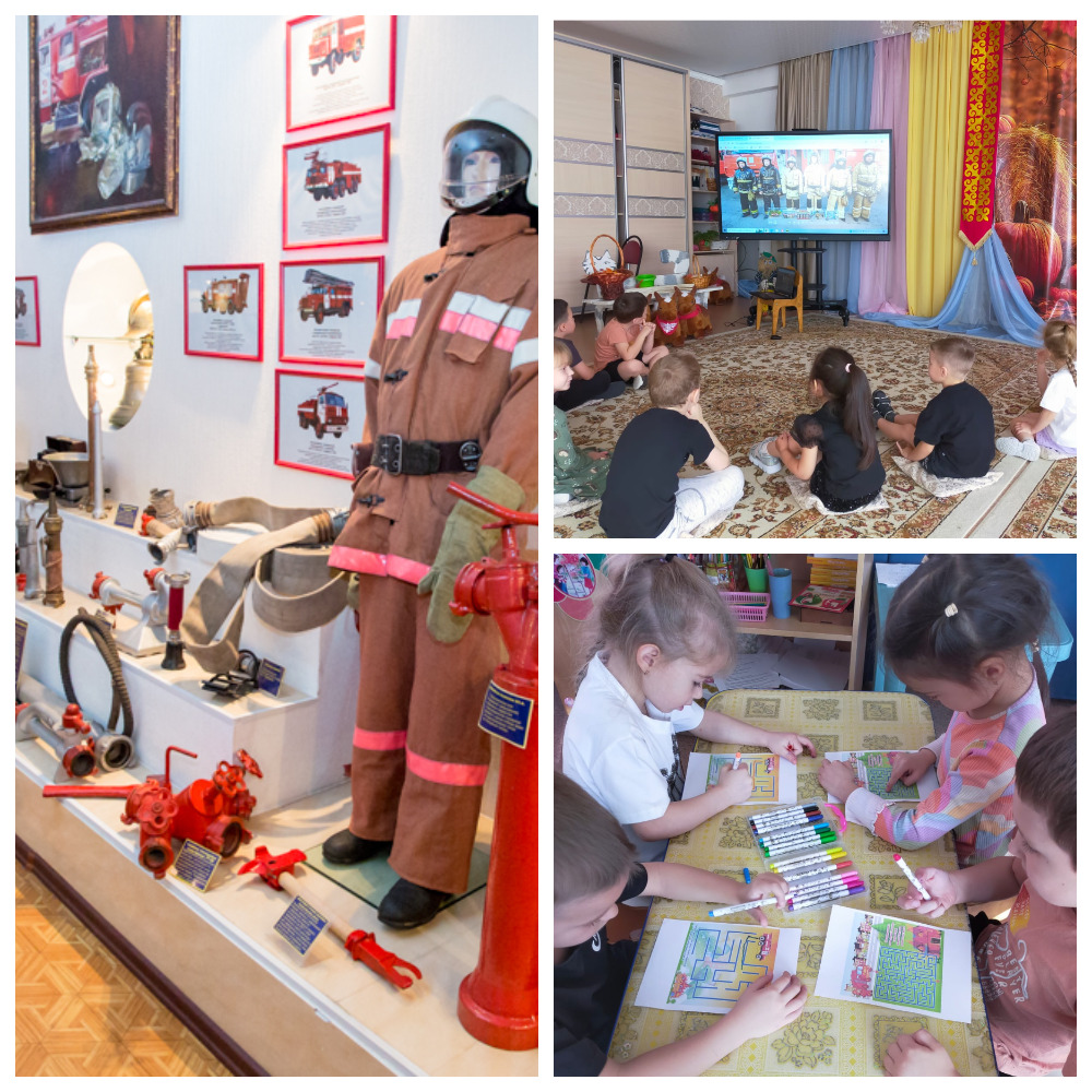 Виртуалды саяхат балаларға өрт сөндіру бөліміне көз жүгіртіп, арнайы жабдықтар мен өрт сөндірушілердің киімдерін қарауға мүмкіндік берді. Өрт қауіпсіздігі ережелеріне ерекше назар аударылды — балалар өрт шыққан жағдайда қалай әрекет ету керектігін және кімнен көмек сұрау керектігін білді.